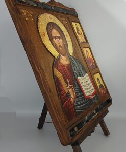 Εικόνα της Παναγίας Αμόλυντος σκαλισμένη σε φυσικό ξύλο λεύκας, με σκαλισμένα σχέδια περιμετρικά και με ασημένιες και χρυσές λεπτομέρειες, αναπαριστά την Παναγία Αμόλυντο να κρατά το Χριστό. Αντίγραφο βυζαντινής εικόνας.